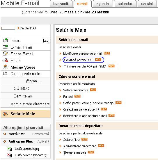Parola POP3 este necesara pentru a putea seta contul Orange Mobile E-mail pe telefonul mobil sau intr-un Microsoft Outlook sau Outlook Express.