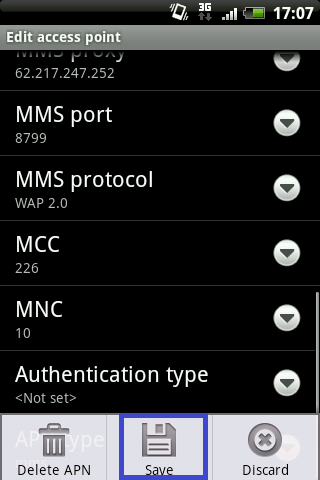 Apasati butonul Menu de la telefon si alegeti New APN de pe ecranul telefonului