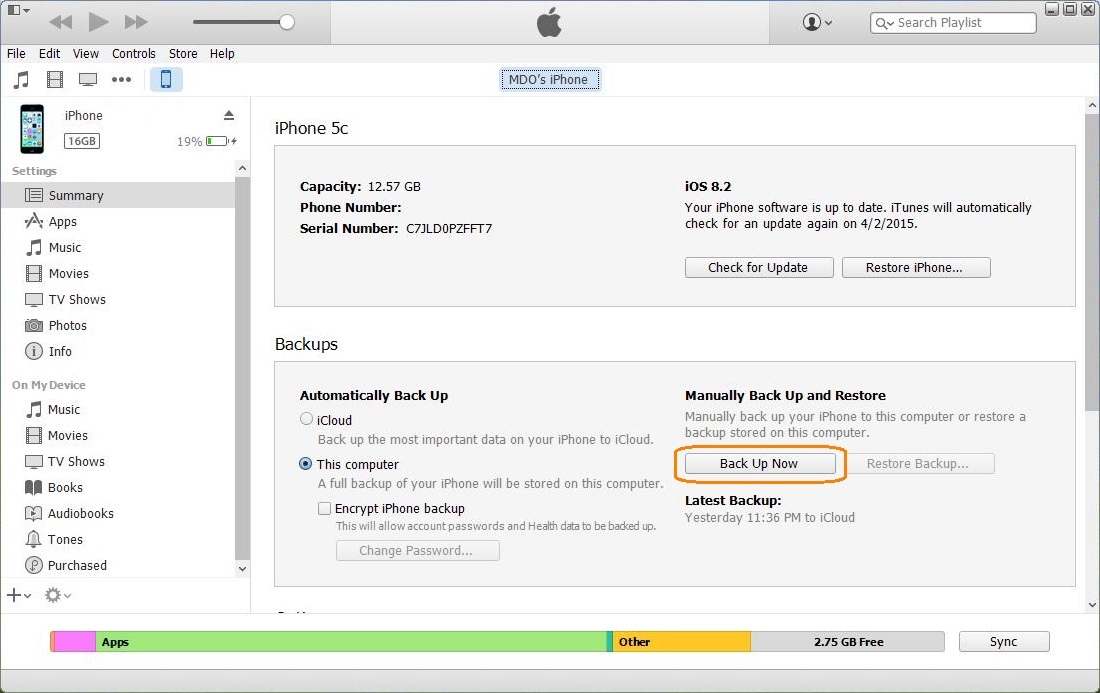 c. Dupa ce apesi pe butonul Back Up Now, datele se vor salva pe calculatorul tau.