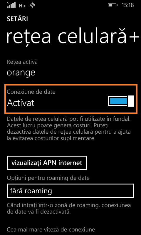 La Conexiune de Date bifam Activat si accesam butonul Setari cartela SIM