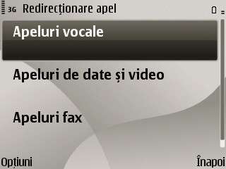 Selectam ce tip de apeluri dorim sa redirectionam. In exemplul nostru am ales Apeluri vocale;