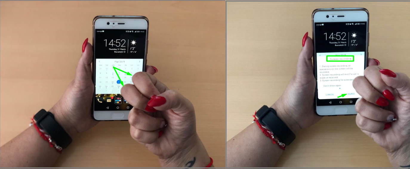 Cred că mulți dintre noi am folosit multă vreme secvența cu apăsarea a două butoane în același timp pentru a face o captură de ecran. Dar Huawei a simplificat chiar și lucrurile care nu ne dau bătăi de cap. Așa că, dacă ai un telefon Huawei poți oricând să lovești de două ori (un fel de cioc-cioc) cu încheietura degetului arătător pe ecran și... screenshot!