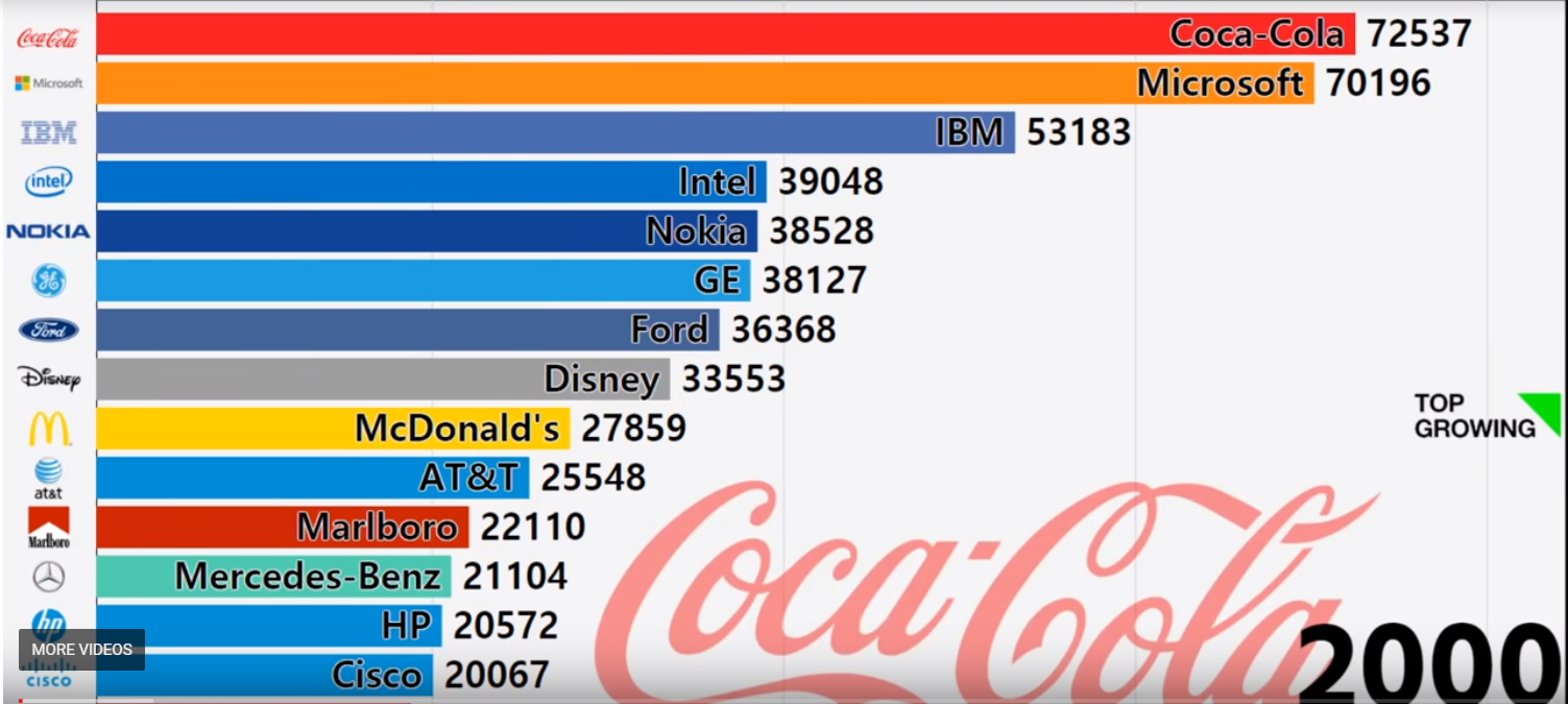 În loc de concluzie, aș vrea să vă prezint o imagine semnificativă a evoluției celor mai mari brand-uri din lume în perioada 2000- 2018.