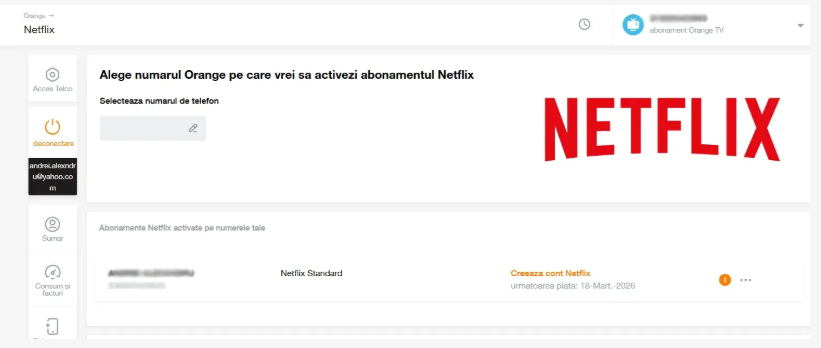 2. Intră în contul My Orange pe care gestionezi codul de client pe care este activată oferta Netflix și urmează pașii descriși mai jos pentru activarea contului tău Netflix: