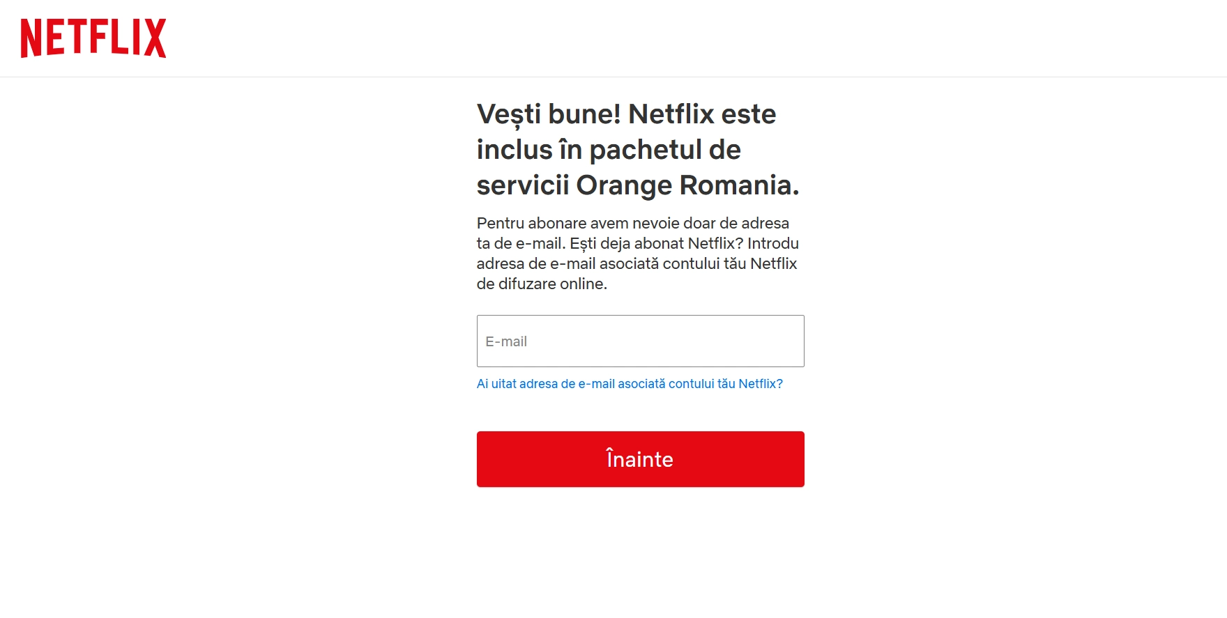 - accesează link-ul primit prin SMS sau email și finalizează asocierea contului Netflix cu oferta Orange din pagina Netflix către care vei fi direcționat